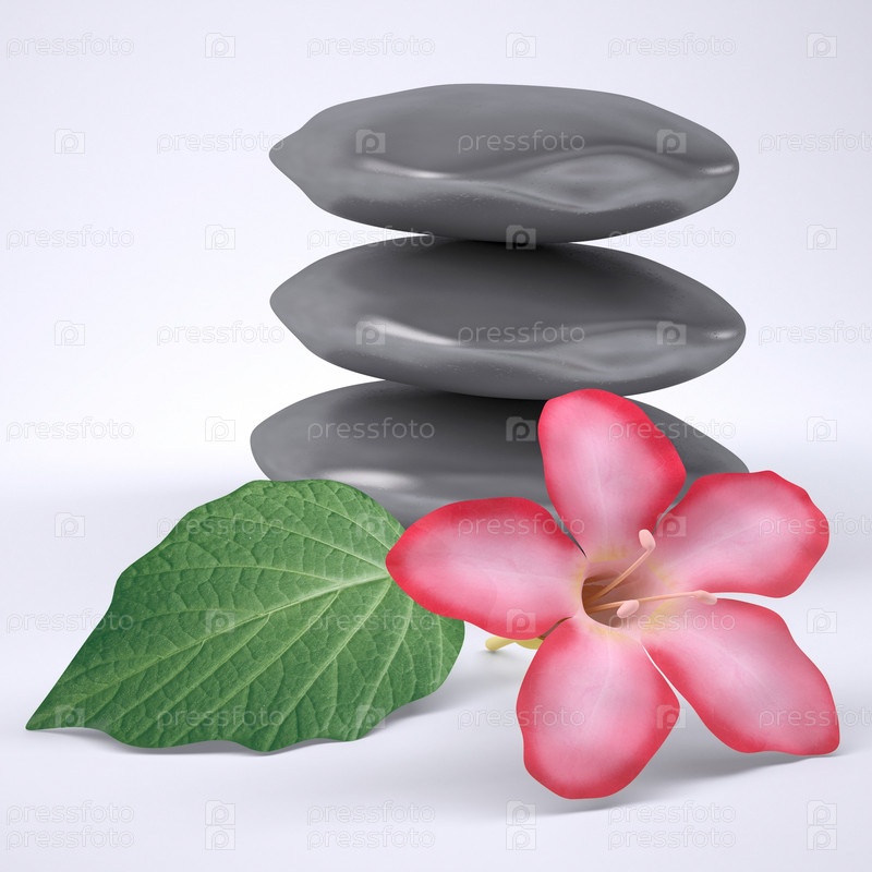Камни, цветок и листья