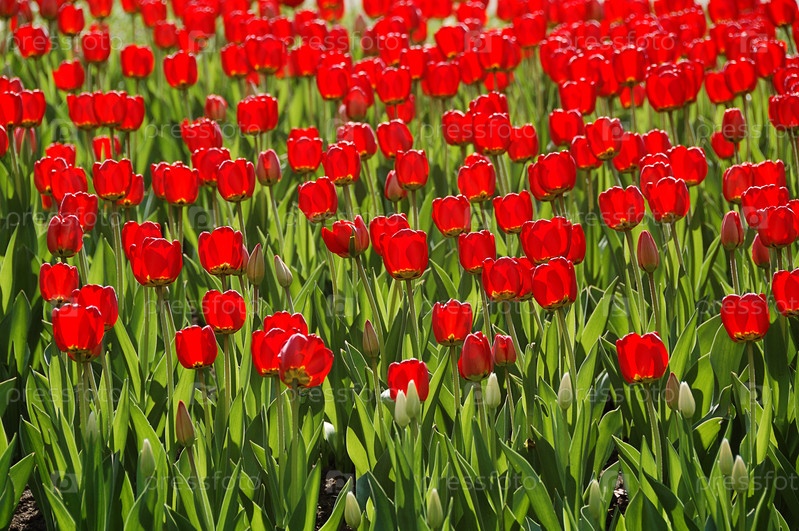 Красные тюльпаны на клумбе