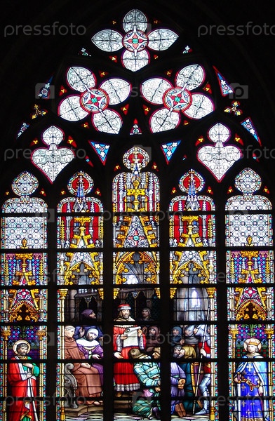 европа. бельгия. брюссель. храм святого михаила и святого гудулы в брюсселе. витраж