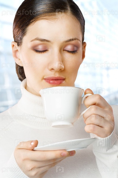 Женщина с ароматным кофе в руках