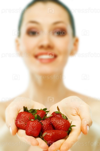 Женщина со спелой клубникой в руках