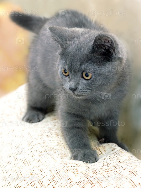 Британский дымчатый котенок во время игры