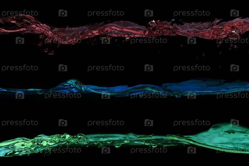 Набор волн розового, синего и зеленого цвета на черном фоне