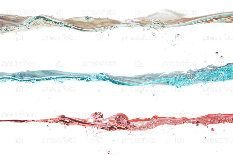 Волны природного, синего и красного цвета на белом фоне