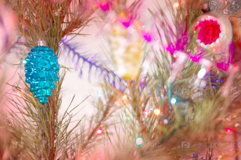 Блестящие рождественские украшения на абстрактном разноцветном фоне