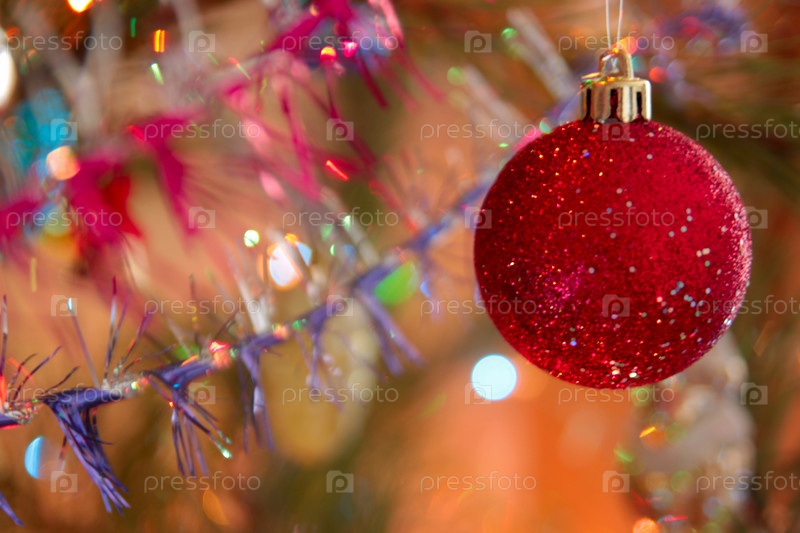 Блестящие рождественские украшения на абстрактном разноцветном фоне