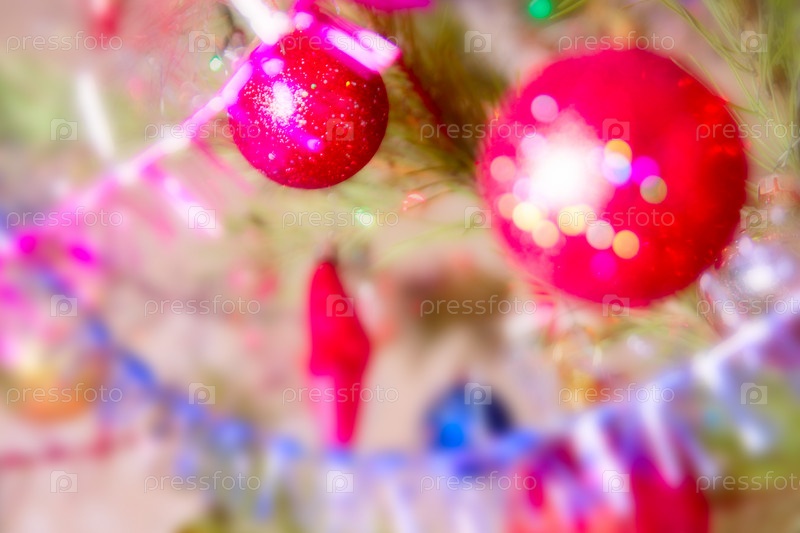 Блестящие рождественские украшения на абстрактном разноцветном фоне