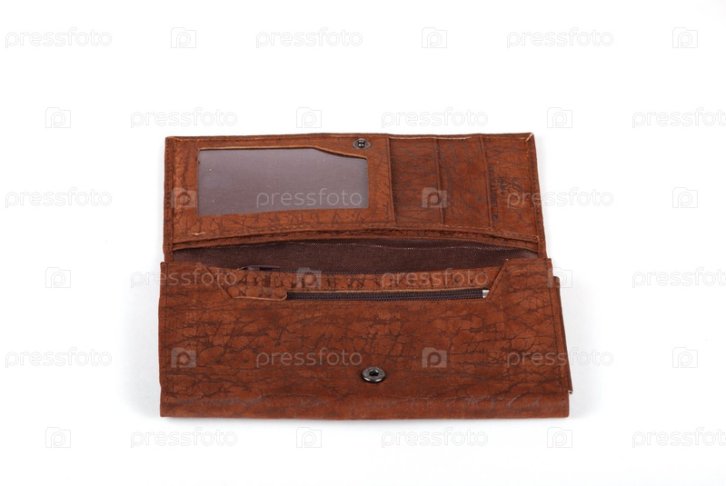 Коричневый кошелек на белом фоне