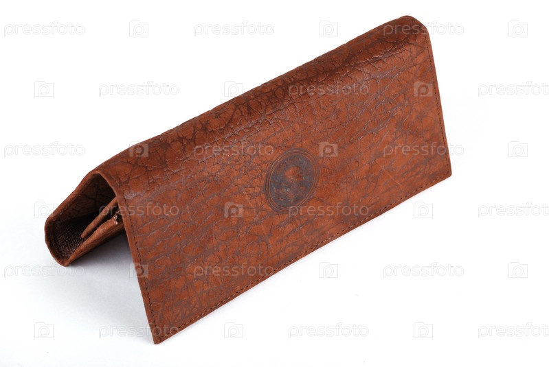 Коричневый кошелек на белом фоне