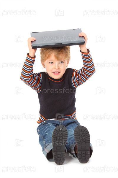 Мальчик с ноутбуком на голове