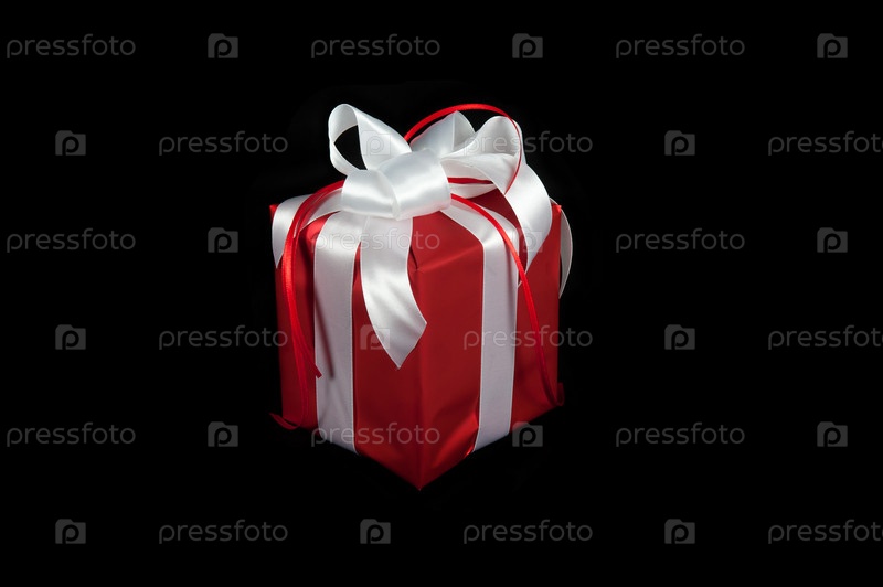 Красная подарочная коробка на черном фоне
