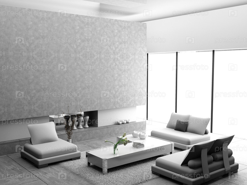 Современный интерьер гостиной в белых тонах