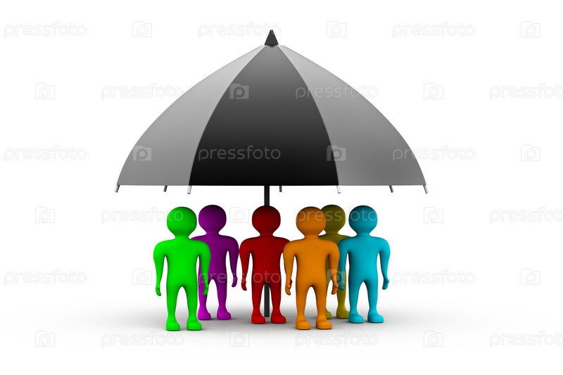 Цветные люди стоят под черным зонтиком