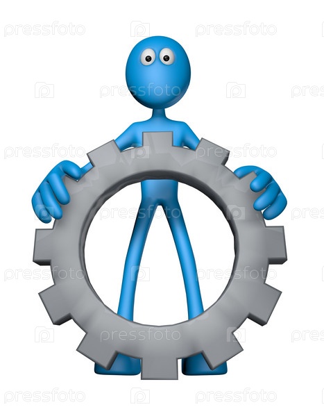 Синий парень и колёсное колесо - 3D иллюстрация