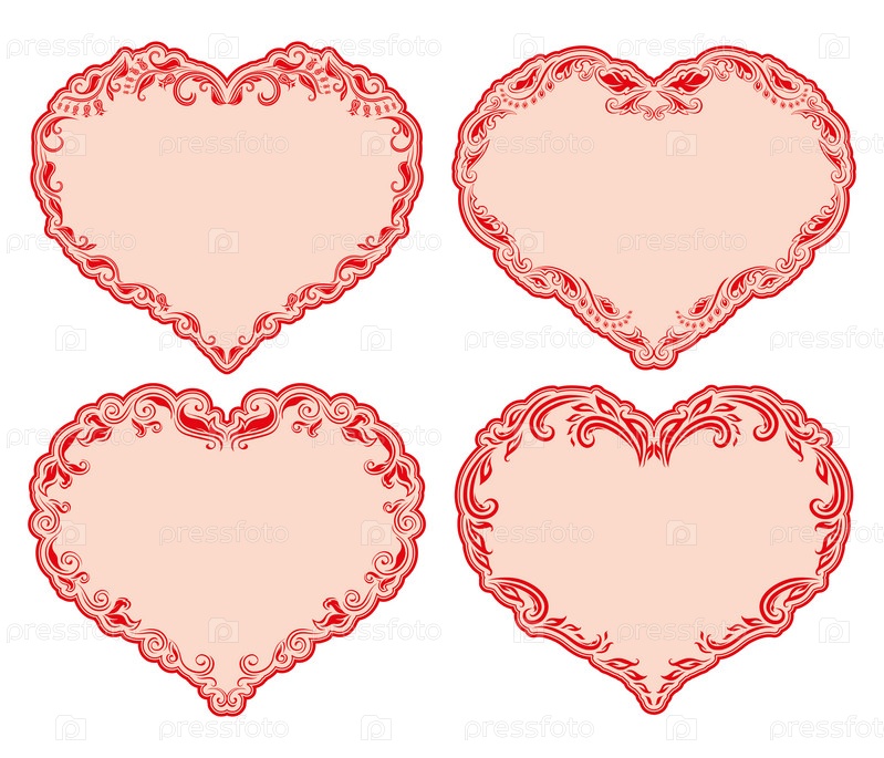 Набор витиеватых рамок в форме сердец