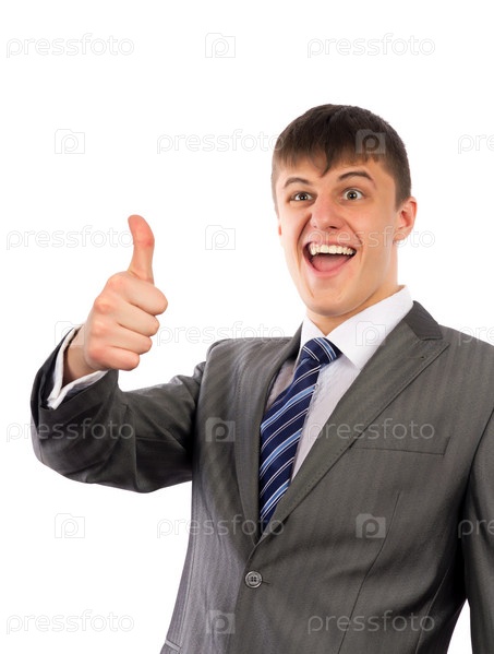 Счастливый бизнесмен показывает большой палец