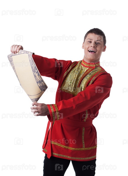 Счастливый мужчина в русском костюме со свитком