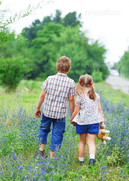 Мальчик и девочка на прогулке