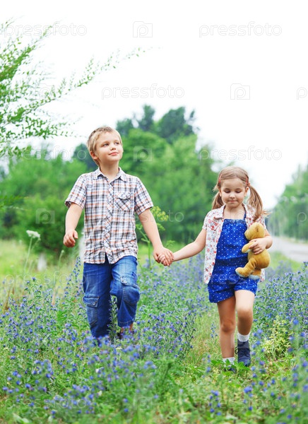 Мальчик и девочка на прогулке