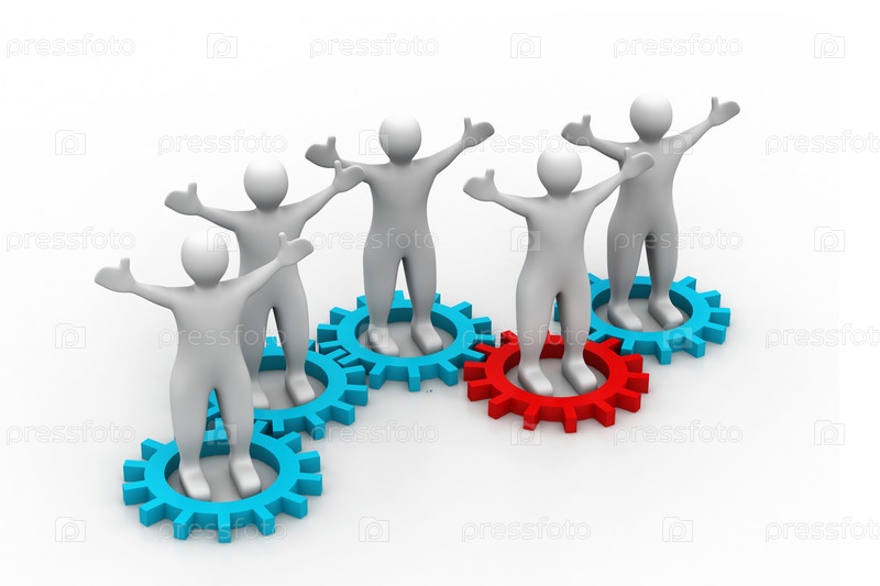 Несколько человек внутри деталей. Клллективная работа и взаимодействие