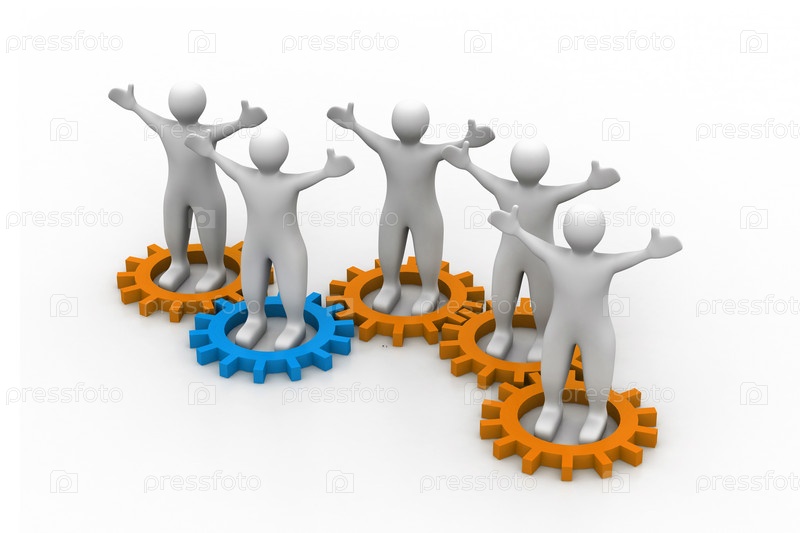 Несколько человек внутри деталей. Клллективная работа и взаимодействие