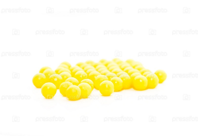 Желтые аскорбинки на белом фоне