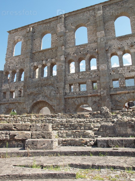 Руины римского театра в Аосте, Италия