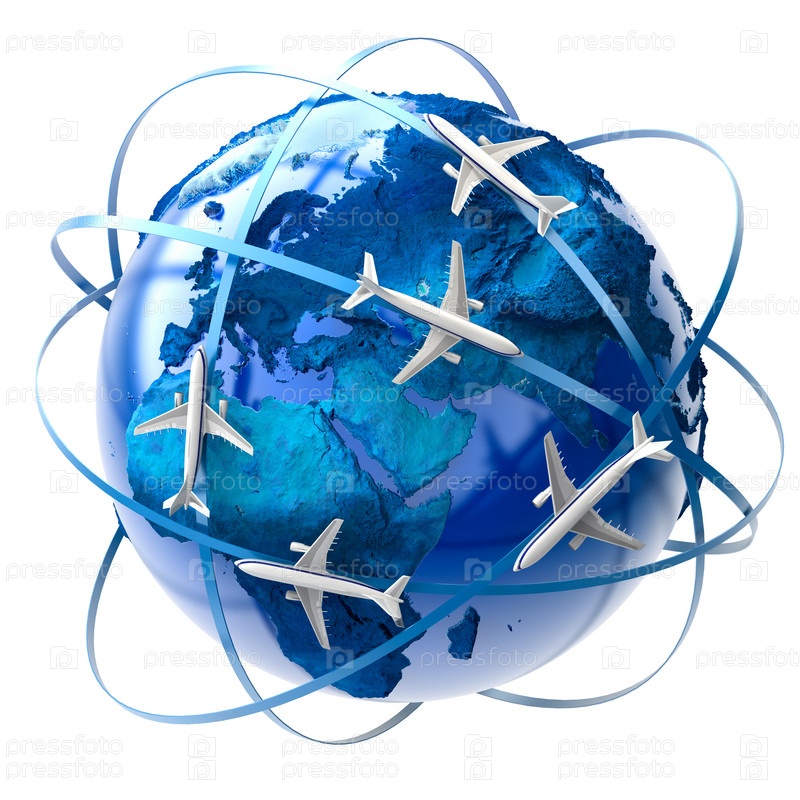 Метафора международных авиаперелетов по всему миру