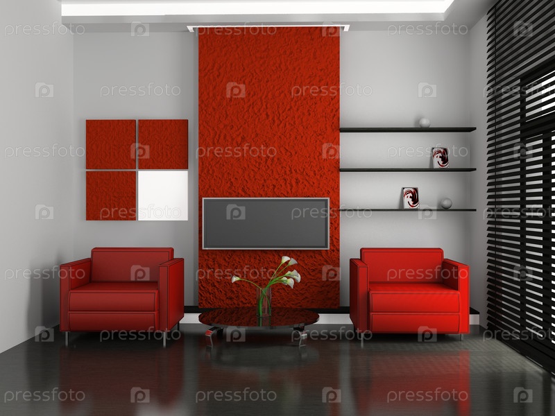 Современный интерьер гостиной 3D