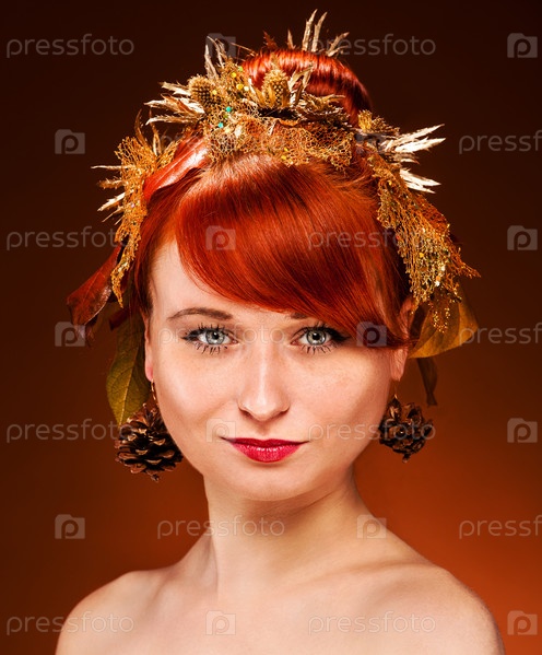 Портрет рыжеволосой девушки с роскошной прической и макияжем