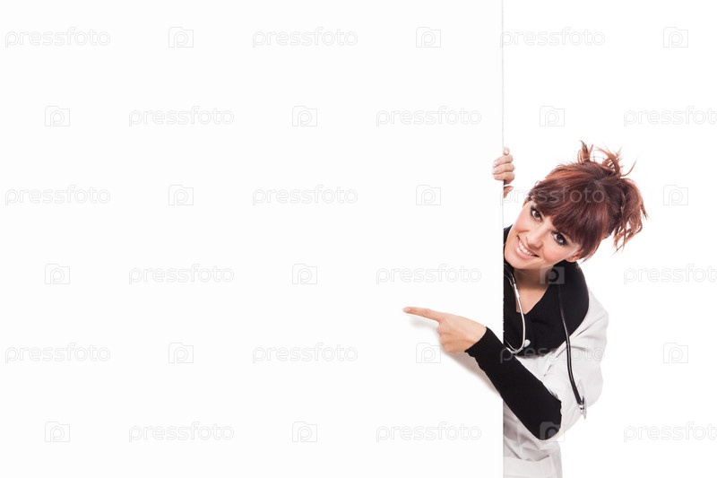 Женщина-врач с пустым баннером