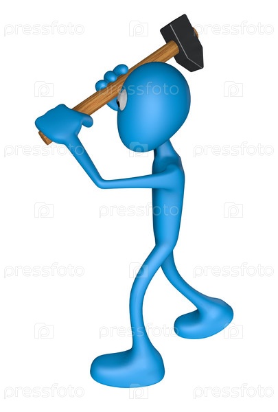 Синий человек с молотком. 3D иллюстрация