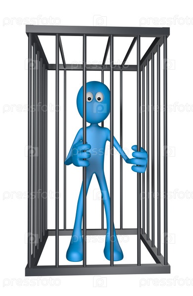 Синий человечек в клетке. 3D иллюстрация