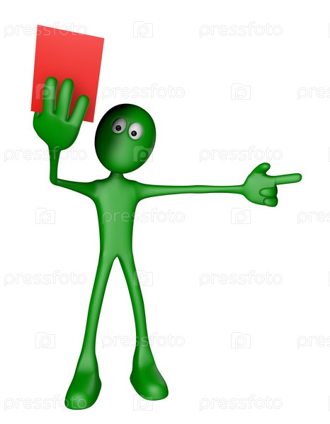 Зеленый человечек показывает красную карточку. 3D иллюстрация