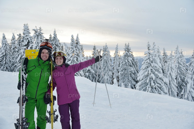 Люди отдыхают на горнолыжном курорте