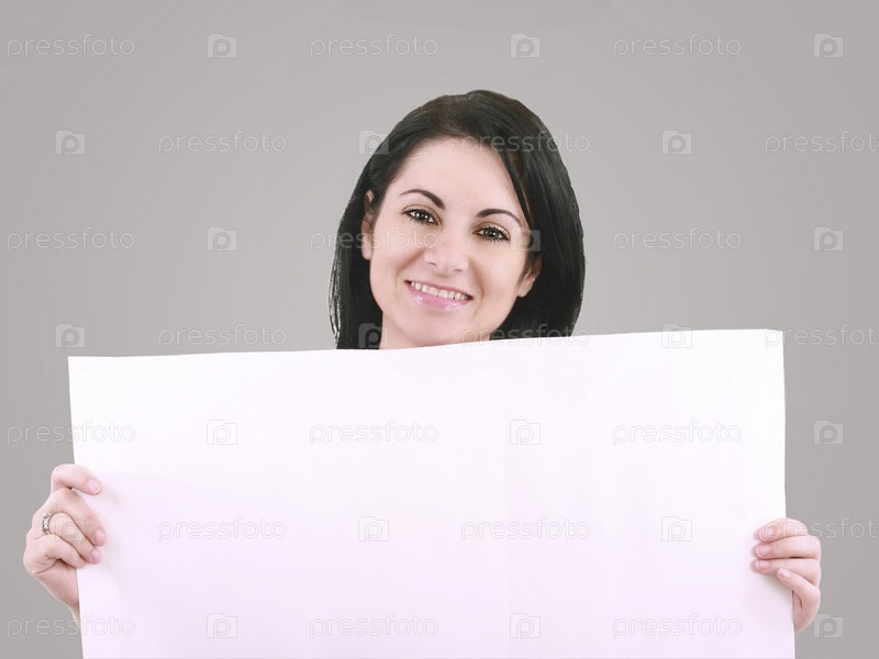 Красивая улыбающаяся женщина с баннером
