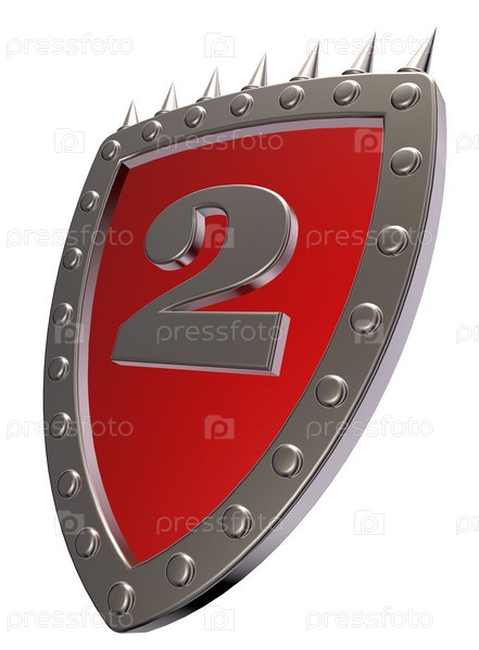 Щит с номером 2 на белом фоне - 3d иллюстрация