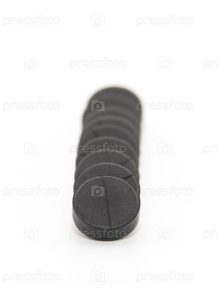Несколько черных таблеток, сложенных в линию