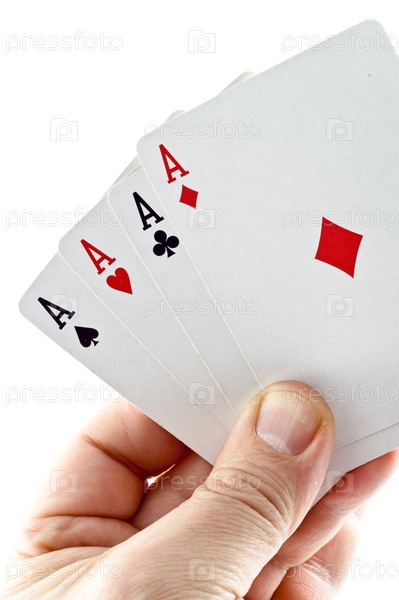 Пять тузов в руке на белом фоне