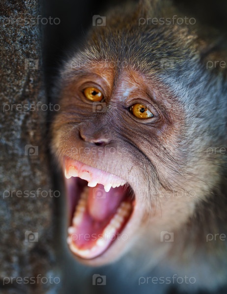 Портрет агрессивной обезьяны крупным планом