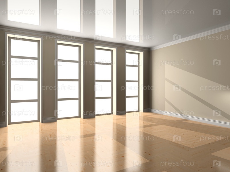 Пустая комната с большими 3D окнами