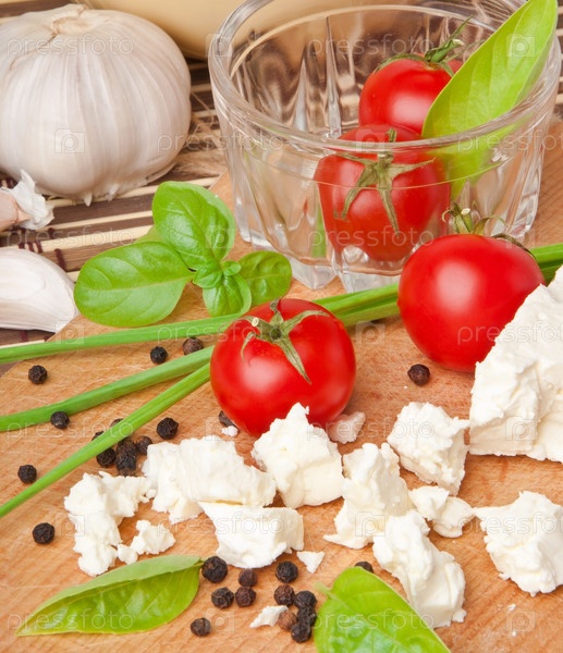 Миска свежих помидоров черри и сыр