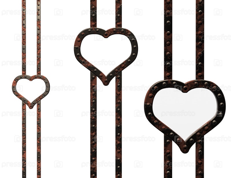 Металлические сердца на белом фоне - 3d иллюстрация