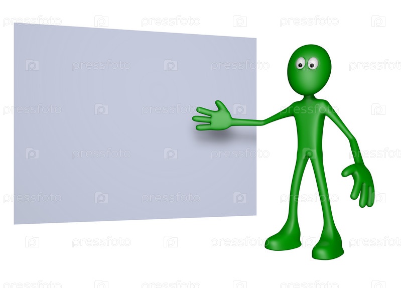 Парень показывает что-то на баннере - 3D иллюстрация