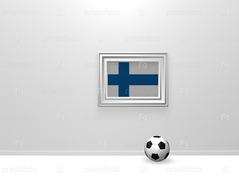 Футбольный мяч и флаг Финляндии в раме - 3d иллюстрация