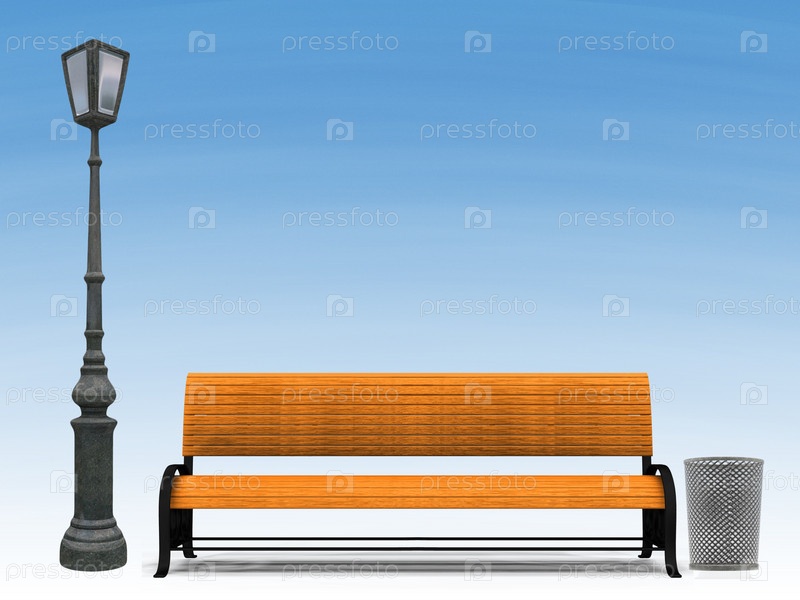 Скамейка и уличный фонарь на фоне неба