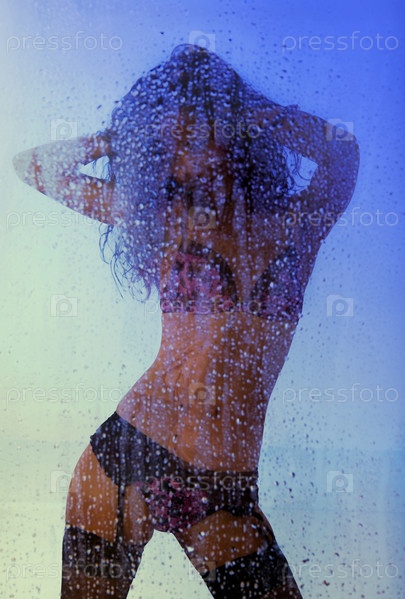 Молодая сексуальная женщина под дождем