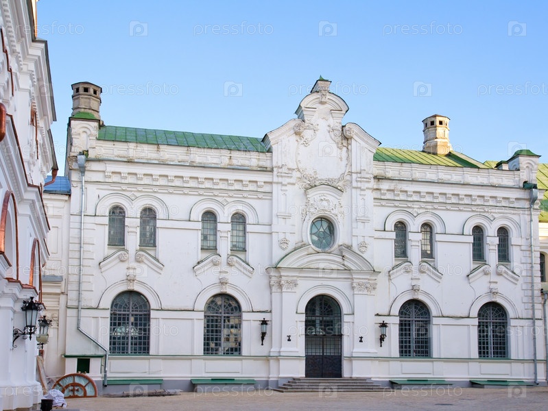 Старое белое здание монастыряв Киево-Печерской лавре