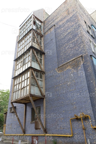 Кирпичный дом со старыми деревянными балконами