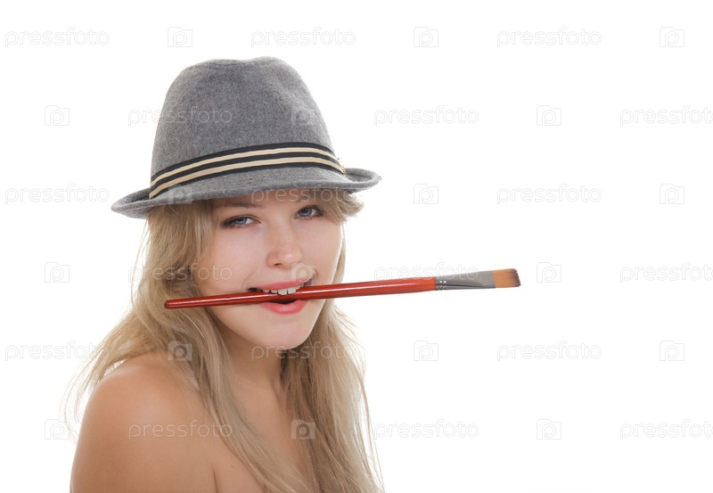 Красивая женщина-художник в федоре
